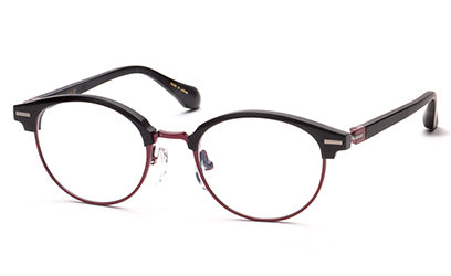 This is a combination frame made of 2mm thick titanium sheet as a base frame and assembled with colorful acetate blow.