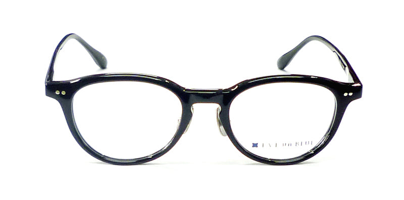 クリングスにもβチタンを採用し柔らかなかけ心地に。またテンプルエンドには EVEブルーに染めたブランドアイコンを配置。