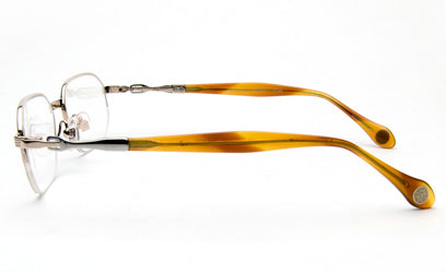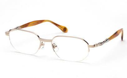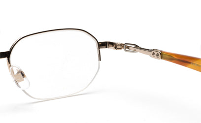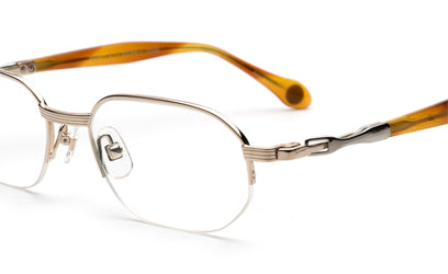 メタルパーツがアクセントとなり、アセテートとのバランスが絶妙で、細身ながら高級感のある掛けやすいモデルに仕上がっています。