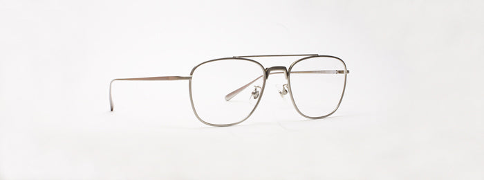 カッチリとした各プレスパーツと1.4mm太リムの組み合わせによりメタルの存在感を高めたⅡブリッジモデル。 レンズサイズを52mmと若干小さめに、又、レンズカーブを4.0カーブに設定することでサングラス・眼鏡のいずれでも使用することを可能としている。 プレス加工によりバネ性とフィット性を持たせたオールメタルテンプルは、ヨロイも含めて丁番削り出しの一コ智・スパルタ加工とし、一体感のあるデザインを実現している。 レンズシェイプはウェリントン。表面処理は、耐久性に優れたゴールドのダイレクトメッキ並びにイオンプレーティングを使用。 表面処理を施さないチタンナチュラルもラインナップしている。