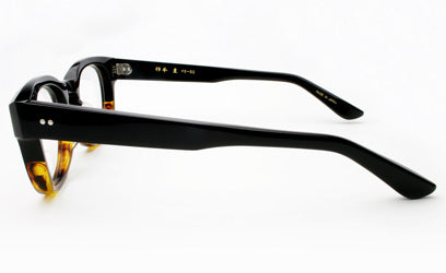 厚さ8mmのアセテート生地にエッジを効かせ立体的に彫り上げたフレーム。 ブリッジはR出しで、フレームに表情を与えます。 ー本ー本職人の手仕上げで磨き上げています。
