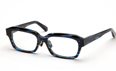 独自の加工技術で8㎜厚アセテートを削り出し、メリハリの効いた杉本圭らしいエッジでフレームの存在感を演出したアイテムです。