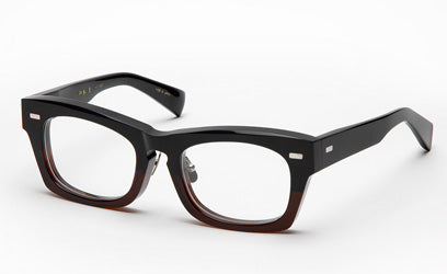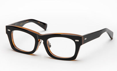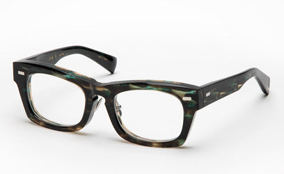 フロントはウェリントン型のシェイプを採用。フロントサイドにカシメピンを打ち込み、メリハリの効いたエッジを施すことでクラシカルな雰囲気の中にシャープさを演出しています。テンプルも縦幅を増やしたため、正面だけでなく全体的に存在感あふれる仕上がりにしました。