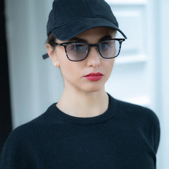 縦幅広めにデザインされたスクエアシェイプは「遊び」と「真面目」、両方の印象を与える絶妙なバランス。