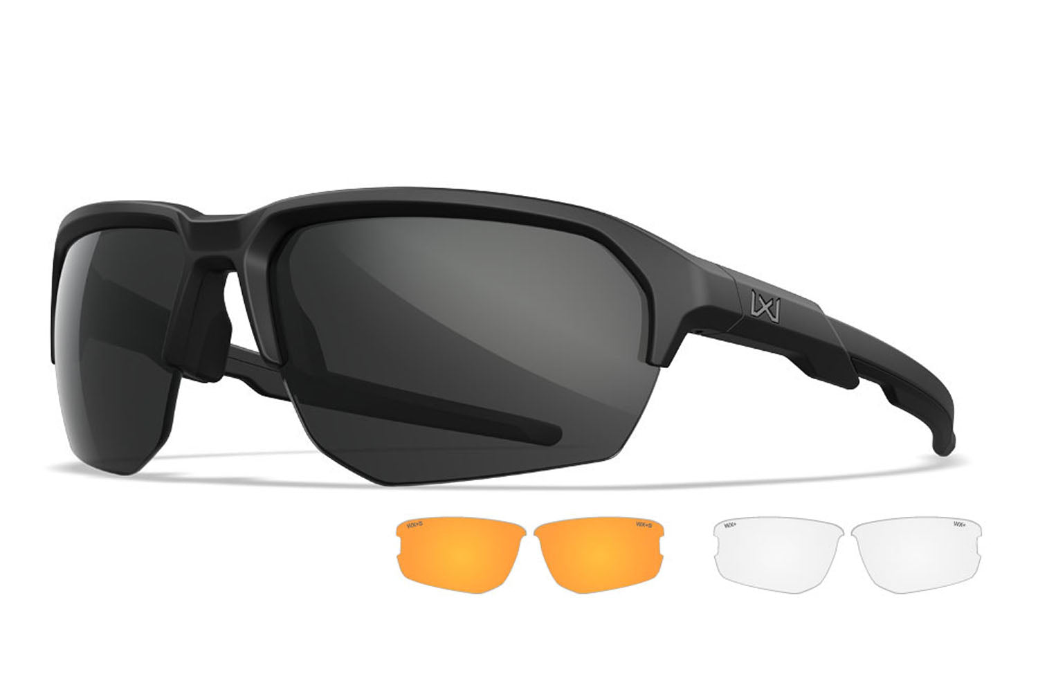 ▲ SELENITE™ Smoke GreyレンズとBlack Opsフレームを組み合わせたWX VALOR TL。WXバッジがステルス・ブラックとなっているBlack Ops(ブラックオプス:隠密)仕様。Smoke Greyレンズは眩しい光を軽減し、自然な色彩を提供するため、晴天等の明るい状況に最適です。